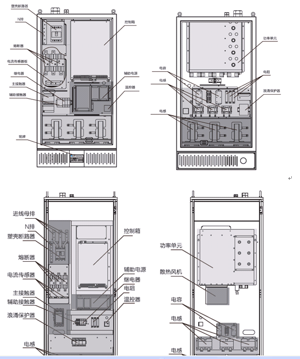 ·模塊化柜體結(jié)構(gòu),節(jié)奏合理,電纜可從裝置柜體頂部或底部進(jìn)入,安裝靈活。800mm寬的有源濾波柜相線濾波能力達(dá)到300A,零線濾波能力達(dá)到600A。