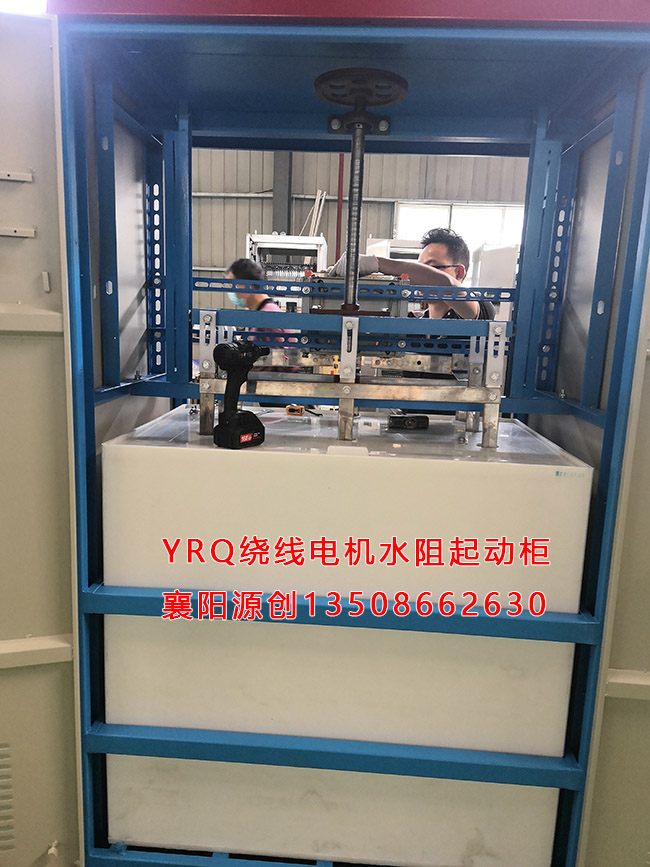 水阻柜是在電機(jī)定子回路中串可變液體電阻的一種降壓起動方式,即隨著主電動機(jī)的起動,裝置自動改變液體電阻動、定極板之間的間距,使電阻線性均勻減小,電機(jī)端電壓均勻提高的一種起動方式。