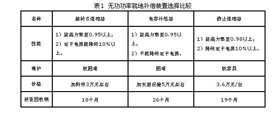 表1  無功功率就地補(bǔ)償裝置選擇比較