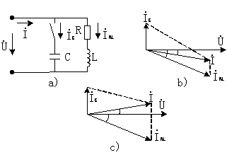 a)補(bǔ)償電路   b)相量圖(欠補(bǔ)償)   c)相量圖(過(guò)補(bǔ)償)