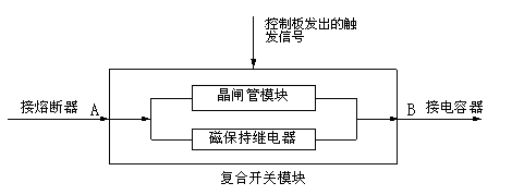 復(fù)合開關(guān)切除電容器過程:控制器輸出的觸發(fā)信號消失后,磁保持繼電器在等電位情況下先斷開,晶閘管經(jīng)延時(shí)后,在電流過零時(shí)斷開。