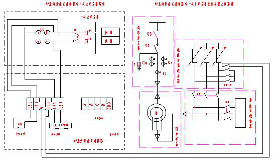 如圖三所示,進相器內配有轉子回路轉換機構,為了保護電機避免電機轉子開路,進相器KM1接觸器的常開觸點串入電機一次開關柜合閘回路中與電機一次開關柜相互聯(lián)鎖,進相器不合閘時KM1不吸合,主機不能起動;如果進相器出了故障,則CPU能自動發(fā)出退相指令使進相器退相,當轉換機構出現(xiàn)故障,則進相器內的KM1、KM2就會出現(xiàn)吸合或同時斷開的現(xiàn)象,此時通過KM1、KM2常閉觸點串聯(lián)后并入電機一次開關柜的分閘回路中,通過聯(lián)鎖使一次柜分閘。