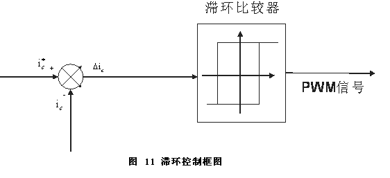 此類控制器中滯環(huán)比較器由于產(chǎn)生的補償電流參考信號能夠快速準確地跟蹤諧波電流變化,具有很好的實時性,所以在有源濾波器中得到了廣泛的應(yīng)用。滯環(huán)比較器的控制框圖如圖11所示。
