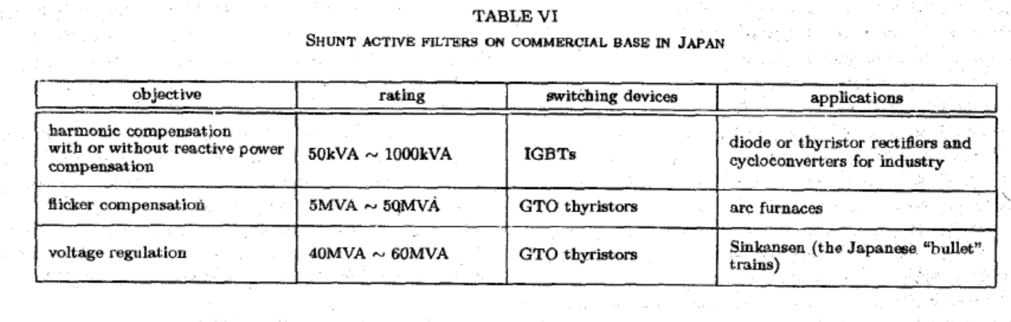 廣泛,1994年之前就有300多臺(tái)投入使用,下表是投入使用的有源電力