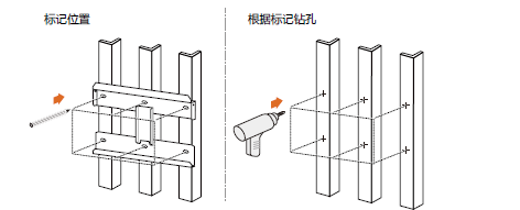 (10) 安裝壁掛架,在金屬支架上安裝需要在支架上對應(yīng)壁掛架螺絲孔位置打孔,然后固定壁掛架。在墻面上安裝需在對應(yīng)壁掛架螺絲孔位置打膨脹螺栓。
