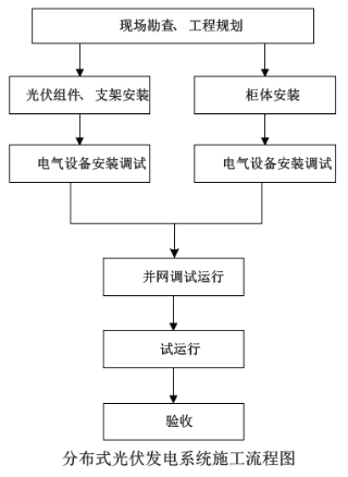工程施工主要流程為:項(xiàng)目組件安裝-電氣設(shè)備安裝—設(shè)備調(diào)試-并網(wǎng)運(yùn)行調(diào)試-試運(yùn)行—竣工驗(yàn)收。